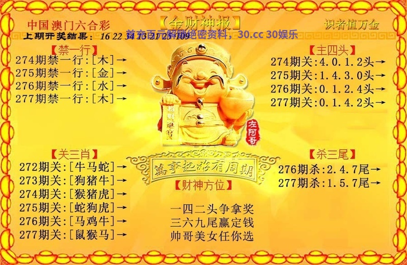 277期:☀吉凶中特☀【吉美】开:虎16错 |