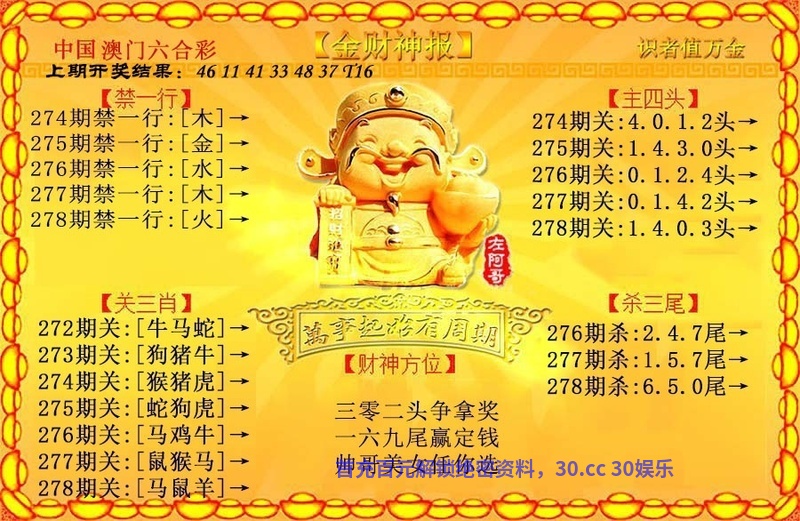 275期:☀吉凶中特☀【吉美】开:鸡45中 |